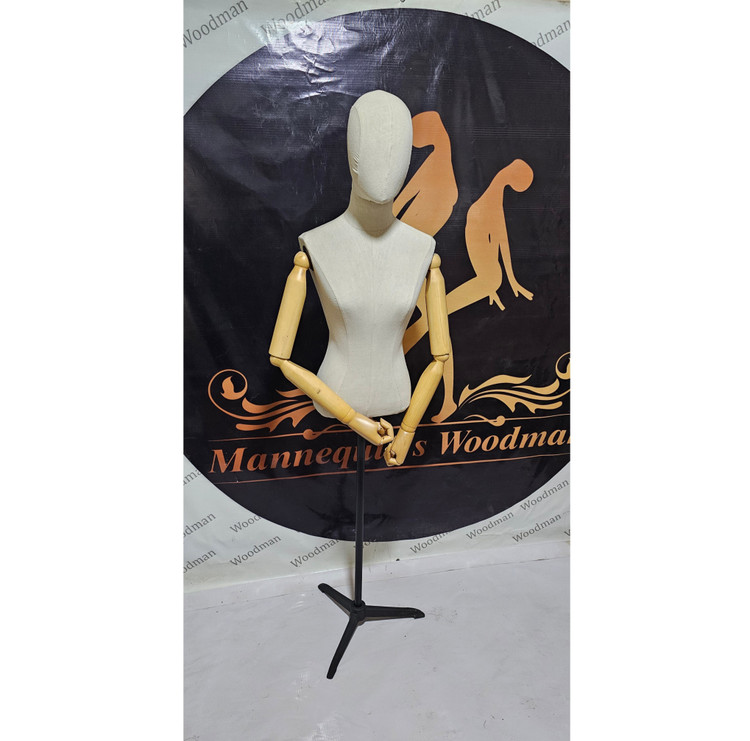 مانکن نیم تنه کوتاه بدون باسن زنانه سایز۳۶_۳۸ جنس پارچه بدنه از نوع تاروپدی مشابه مانکن های خارجی کیفیت بینهایت عالی و با دوام و عمر و کارایی بالا،،،جنس پایه از الیاژ چدنی با رنگ کوره ای مشکی سمباده ای،،،جنس دست های چوبی از چوب روس و مچ انگشت متحرک از جنس بلوط(مچ وارداتی) رنگ اعمال شده خودرنگ میباشد با کیفیت عالی و بدون مشابه در بازار داخلی ایران