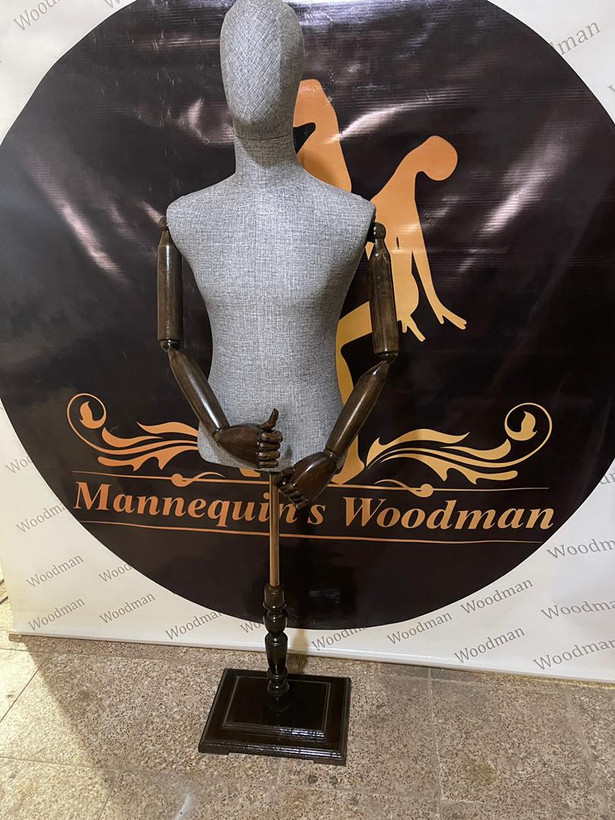 مانکن پینوکیویی مردانه از جنس بدنه فایبرگلاس با روکش پارچه ترک،دست و پایه این مانکن از جنس چوب راش بوده و دست های مفصلی جزو مزیت های مهم این مانکن میباشد،سر فضایی روکش شده قابلیت باز شدن و چرخش داره که این امکان رو به شخص میده تا از تنوع حالت های بیشتری استفاده کنه